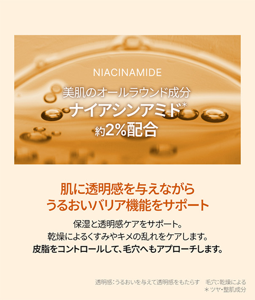 毛穴をケアし、透明感のある肌に整える化粧水。