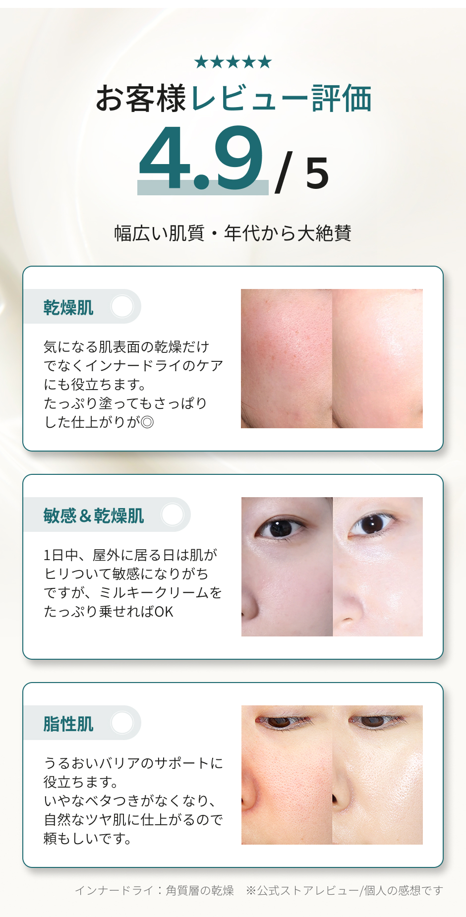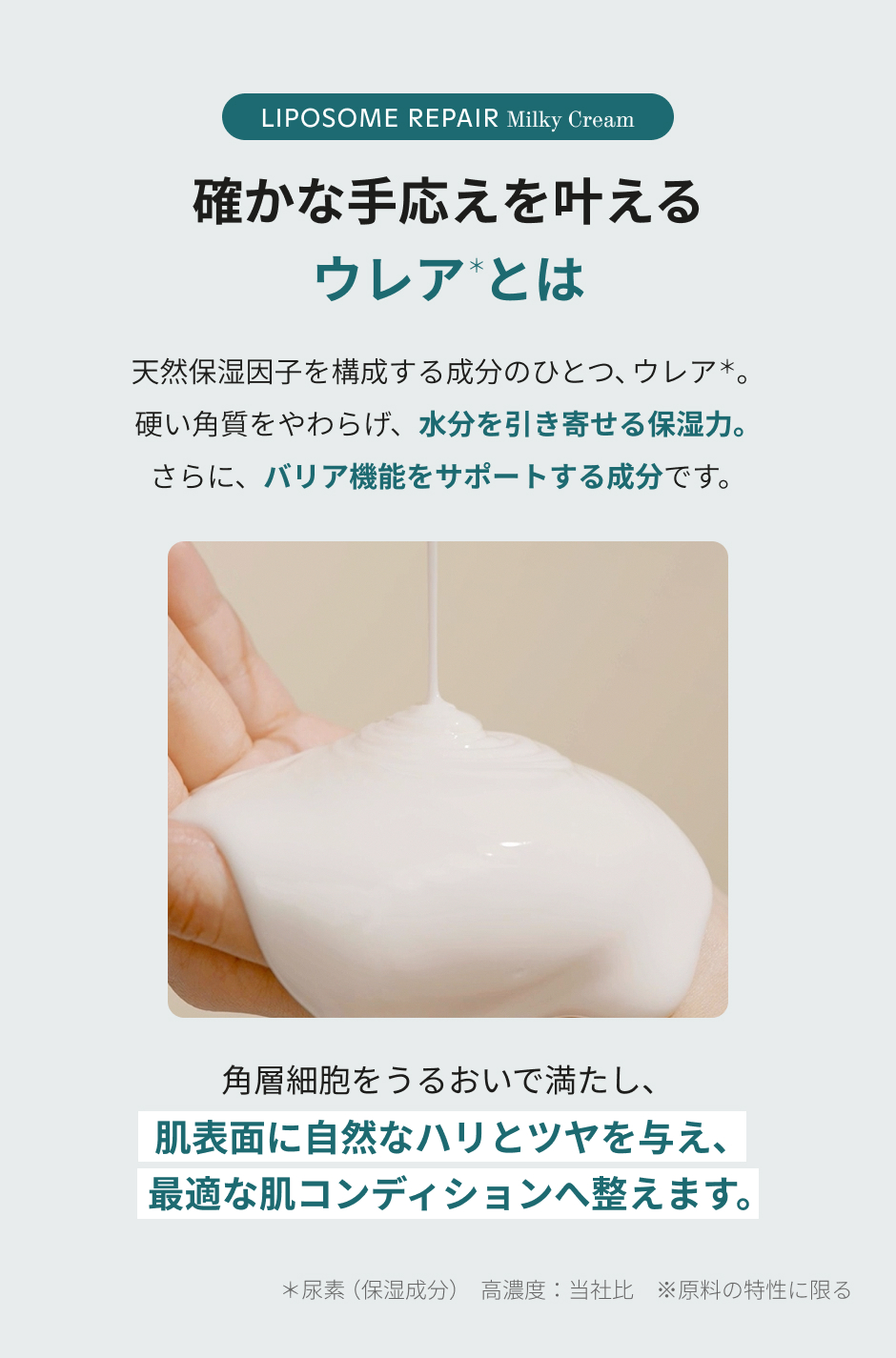 うるおいが長時間続く肌に。ウレア高配合のミルキークリーム。
