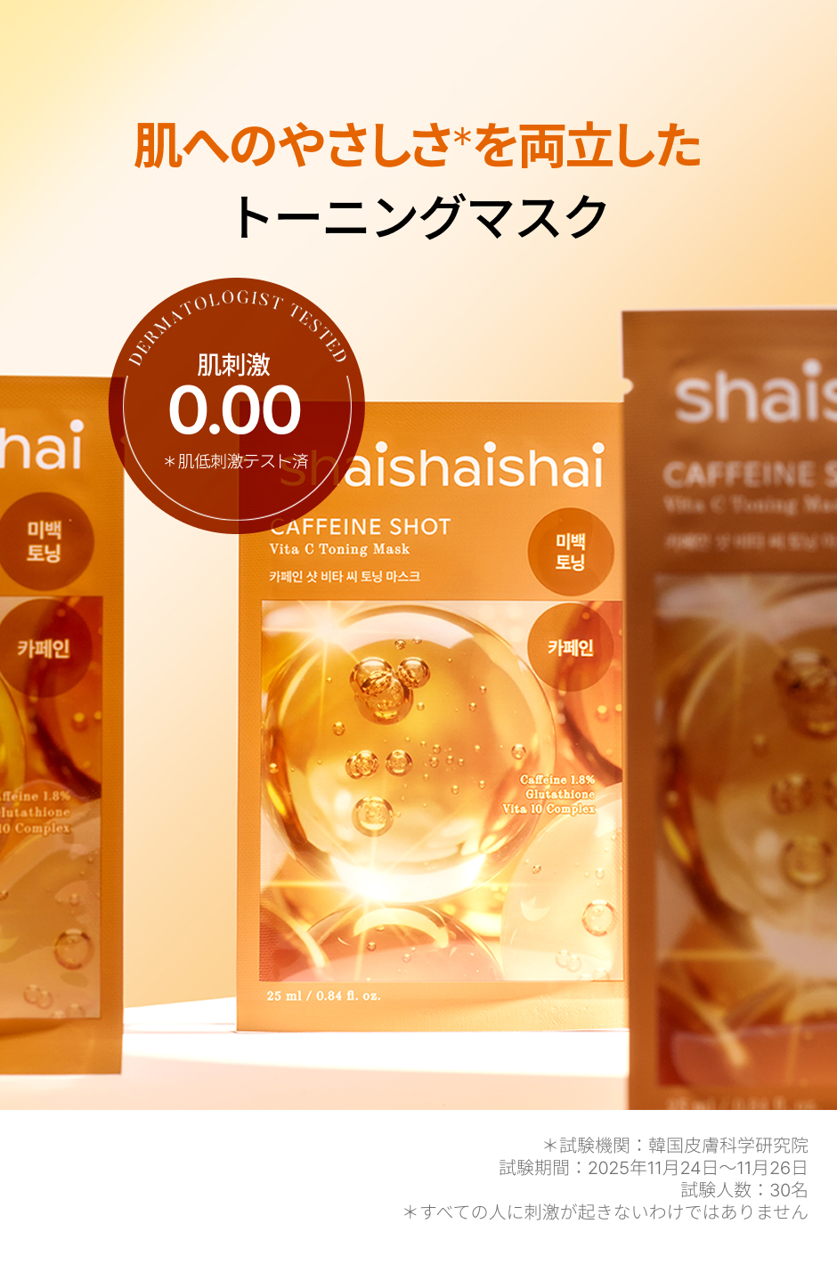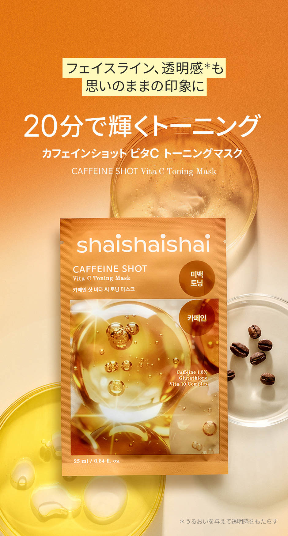 カフェイン配合のシートマスク。
